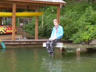 Yesterday we went to a huge flea market across the highway from the campground. Never saw so much junk in my life. Was fun just to walk around. Then in the late afternoon we took a pontoon boat ride on the lake. Very refreshing since it was hot and very humid. Saw this computer nerd with his laptop on the dock. Some people just can't keep away from them. Today we drive to between Knoxville and Nashville. Fresh corn and some beautiful porkchops for dinner tonight.